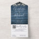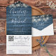 Blue Rustic Wood String Lights QR Code Wedding All In One Invitation
