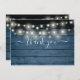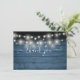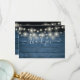 Blue Rustic Wood String Lights Script Wedding Thank You Card