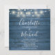 Blue Rustic Wood String Lights Wedding Photo Invitation
