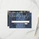 Blue Rustic Wood String Lights Western Wedding RSVP Card