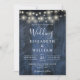 Blue Rustic Wood Wedding String Lights QR Code Invitation