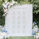 This refined wedding seating chart backdrop features elegant sage green serif typography on a soft white background. The minimal, timeless layout allows for up to fifteen tables with guest names clearly displayed — perfect for garden weddings, formal receptions, or outdoor celebrations. Match with other pieces from the “Iris” Wedding Collection for a cohesive event look.