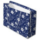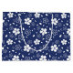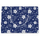 Traditional Japanese Sakura white cherry blossom flowers on blue.