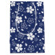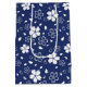 Traditional Japanese Sakura white cherry blossom flowers on blue.