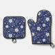 Blue Sakura Pattern Oven Mitt & Pot Holder Set