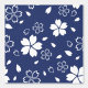 Traditional Japanese Sakura white cherry blossom flowers on blue.