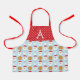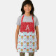 This adorable apron features a blue background with Santa, milk, and cookies and a red and white polka dot accent. Personalise with an initial.