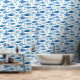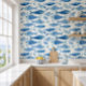 Coastal-inspired wallpaper featuring a blue sardine watercolor pattern in soft ocean tones. Perfect for kitchens, dining areas, or beach-style interiors, this seamless design adds a fresh, Mediterranean feel to your space.