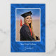 The blue abstract background has an attractive satin look to it. Great look for your graduation announcement card. The "Graduate" text on the front is actually a graphic image but is editable with the Design Editor. The photo and all text are easily changed with the template. Selecting “Personalize this design” offers you several edit options to easily change the text (wording, plus type font, color, size, position) and to edit the design elements, if you desire. You may also want to scroll down to the section “Transfer design to a product” for a few suggestions about other items this design can be used on.