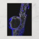 Saxophone image in black-and-white with deep blue highlights, on a black background. Great for sax lovers!