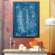 Saxophone patent poster in blue. Matching items in our store.