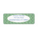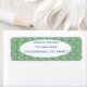 These return address labels have an art deco design of blue and purple half circles connect with lines on a field of light green.