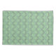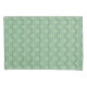 This pillowcase has an art deco design of blue and purple half circles connect with lines on a field of light green.