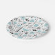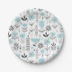 Blue Scandinavian Floral Pattern Paper Plate