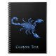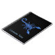 Blue scorpion drawing with 3D shading. Custom background colour. Custom text.