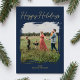 Blue Script Modern Minimal Photo Happy Holidays Foil Holiday Card.