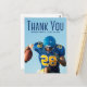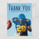 Thank You written in tall blue typography over your senior portrait graduate photo makes a simple graduation thank you postcard for a football player on a sports team. Customise with your name and class of 2026 on these minimalist text overlay graduate postcards. Write a personalised message of thanks on the back.