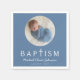 Personalized Blue Script Religious Cross Baptism Photo Napkins.
