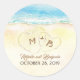 Blue Sea and Sand Heart Initials Wedding Classic Round Sticker