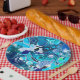 Birthday or baby shower paper plates. Blue and green ocean art with bubbles and modern abstract fluid art vibe.