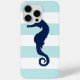 Blue Sea Horse on Mint Stripes Case-Mate iPhone Case