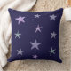 Blue sea stars on navy blue Throw Pillow. Blue stars with some violet shades.
