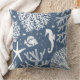 Add one of these beautiful blue and white coral and seahorse throw pillows to your living room and create a luxurious look and feel with a beautiful coastal style. These seahorse throw pillows were created by Totally Coast designer, Jillee K. They are available in different styles (Polyester, Zipperless, Cotton and Outdoor) and 3 different sizes (16" x 16", 20" x 20", 13" x 21"). You can select the style and size you want to the right of the pillow image under the labels of "Fabric" and "Size". © Totally Coast All Rights Reserved 2024