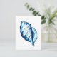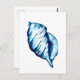 traditional watercolor artwork of a seashell in blue watercolors on a postcard