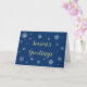 A modern yet timeless holiday card! Season's Greetings in pretty gold typography. White and gold snowflakes. Dark blue background. The inside of the card is 100% customisable. Add your family's names and even change the holiday wishes on the inside of the card if you'd like. Text on the inside is "Wishing you the very best of the season. Happy Holidays!" "from <your family's names>"