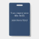 This identification badge for a security guard or employee features a navy blue background with a sample logo in the centre. You can personalise the ID badge to display your own company, business or organisation logo, or your own custom image. There is an area beneath the logo to print an employee name or other text. The word "SECURITY" is printed along the right side in a bright yellow font. A sample photo is printed in the bottom portion which you can replace to make your own photo ID. The back of the badge has a blue background with white text where you can include your company phone number or other information.