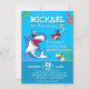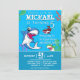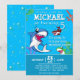 Blue Shark Cute Sea Life Kids Birthday Pool Party Invitation