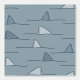 Nautical wallpaper for nurseries and kids rooms featuring a shark fin / whale fin / dolphin fin popping out from the waves. A simple color palette with a few shades of blue are the features in this monochromatic sea life inspired wallpaper for kids.