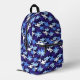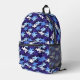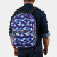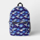 Cool shark camouflage pattern created with shark silhouettes swimming freely in shades of blue and white. It's a unique design for shark lovers on custom backpacks. You can easily change the size of the pattern on each panel and add any text to personalise. Great for school, travel, and more!