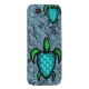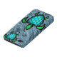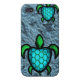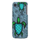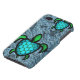 Digital painting of a sea turtle with a blue octagonal patterned shell. Sea turtle art from wingedturtle.com.