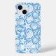 Customise this blue shell pattern iPhone 15 case with your your name in a trendy modern CAP font in blue on white. It's so modern and beachy!