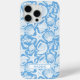 Customise this blue shell pattern iPhone 15 pro max case with your your name in a trendy modern CAP font in blue on white. It's so modern and beachy!