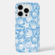 Customize this blue shell pattern iPhone 16 pro case with your your name in a trendy modern CAP font in blue on white. It's so modern and beachy!