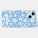 Customize this blue shell pattern iPhone 15 case with your your name in a trendy modern CAP font in blue on white. It's so modern and beachy!