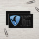 A silhouetted soccer player in black is centred on a blue shield framed with white on the bottom. The player is in the motion of kicking a ball. The right side holds your easily customised business text in light grey. The images and text are placed on a dramatic black background. The back of the card is also black, with an extra information field if you need it. Perfect for any business that is centred around soccer or athletics, or just for fun! *Clip art used in this design is copyrighted by Encore Software, Inc., which permits use to its licensors. All rights reserved.
