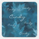 Blue Shimmering Leaves with Repeated Scripty Name Square Sticker