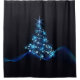 Blue Shine of Stars on Christmas Tree Dark Shower Curtain