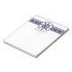 Jot down notes and reminders with a personalised Blue Ships Wheel Personalised Notepad. Notepad design features a blue ships wheel adorned with an anchor lined banner. Additional matching stationery items available with this design as well. If you need assistance with personalisation, please contact me directly.