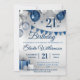 Blue Silver 21st Birthday Invitation