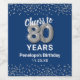 Custom elegant eightieth birthday party wine bottle labels featuring a stylish blue background that can be changed to any colour, silver sparkly glitter, eighty silver hellium balloons, and a modern text template that is easy to personalise.