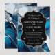 Blue Silver Agate Marble Glitter Wedding Invitation