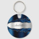 Blue and faux silver agate, marble stone print as background Personalise and add your name. The name is written with a modern hand lettered style script.