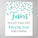 Favours sign for baby shower, bridal shower, birthday party or wedding in light blue and silver confetti pattern. Please note glitter effect is photographic effect only.