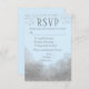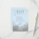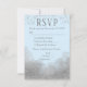 An elegant blue and silver RSVP card featuring silver dust confetti at the top and silver accent, along with meal options.