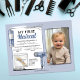 The child's photo and name take centre stage, proudly acknowledging their courage in the face of the unknown. Beneath, the date of this monumental event is inscribed, immortalising the day forever. The stylist's name adds a personal touch, honouring the skilled hands that made this experience unforgettable.