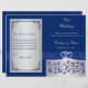 This romantic 8.5"x11" royal blue and FAUX silver grey floral wedding program has a PRINTED ON ribbon and bow with a pair of PRINTED diamond jewel and FAUX glitter (simulated) joined hearts on it, with ornate scrolled borders on the back that matches the wedding invitations shown below. There is also a verse that says "This day, I marry my best friend. The one I live for, laugh with, dream with, love" on it. It is designed to be folded down the centre. ****PLEASE NOTE that the higher grade paper is a card stock and does not fold well. ALSO, be sure to make sure that the text is centred where you want it, as everything will print as you see it on your monitor. All the text is customisable. Email me at niteowlstudio@gmail.com if you need any assistance with the customisation of this, or if you have any questions, or requests for matching items.